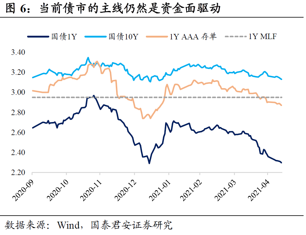 考慮到美聯儲存在低估通脹風險的可能性,國內輸入性通脹壓力可能依然不小,5月份利率債淨供給進一步放量、以及資金面臨時點擾動,短端和超長端利率下行的節奏都有所放緩,債市短期內波動可能加劇,勝率和賠率的安全邊際變得模糊,繼續追漲的必要性降低。