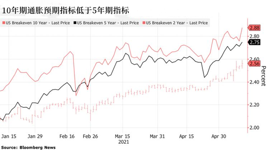 美聯儲官員已開始將通脹預期視為抵禦物價飆升的第一道防線。通脹預期指標顯示,未來一年左右,物價將強勁上漲,然後回落到更正常的水平。密歇根大學4月份調查的美國消費者中值預計,明年通脹率將達到3.4%,然後未來5至10年將降至2.7%。