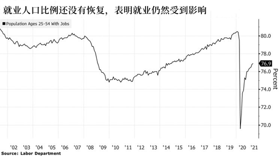 在判斷就業市場的健康狀況時,美聯儲官員使用工作年齡人口的就業比例作為衡量標准,比使用失業率更有效。今年4月,25歲至54歲的年輕人中有76.9%有工作,而在疫情和2007-09年經濟衰退之前,這一比例超過80%。佈雷納德週二指出,非裔和拉丁裔中,就業率甚至更低。