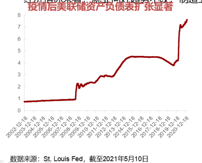 尤柏年說道:“最新上任的美聯儲主席鮑威爾,在新冠肺炎疫情期間,一下子把美國的資產負債表擴大到GDP百分三十多的水平。很多前美國央行官員及部分投資人認為,現在經濟已經出現了復甦苗頭,美國總統拜登還在想辦法做很強的財政刺激,已經給未來埋下了通脹預期的種子。而後續的縮表很可能對金融資本市場影響非常大。”