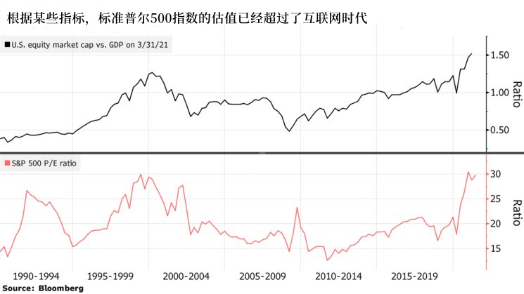 資產管理公司Toews Corp.的CEO菲爾·托斯(Phil Toews)對此表示贊同。他預計收益率將繼續走高,這將給股市帶來挑戰。此外,他表示,以某些指標衡量,估值已經超過了互聯網時代的水平,這往往預示,市場會重蹈覆轍: