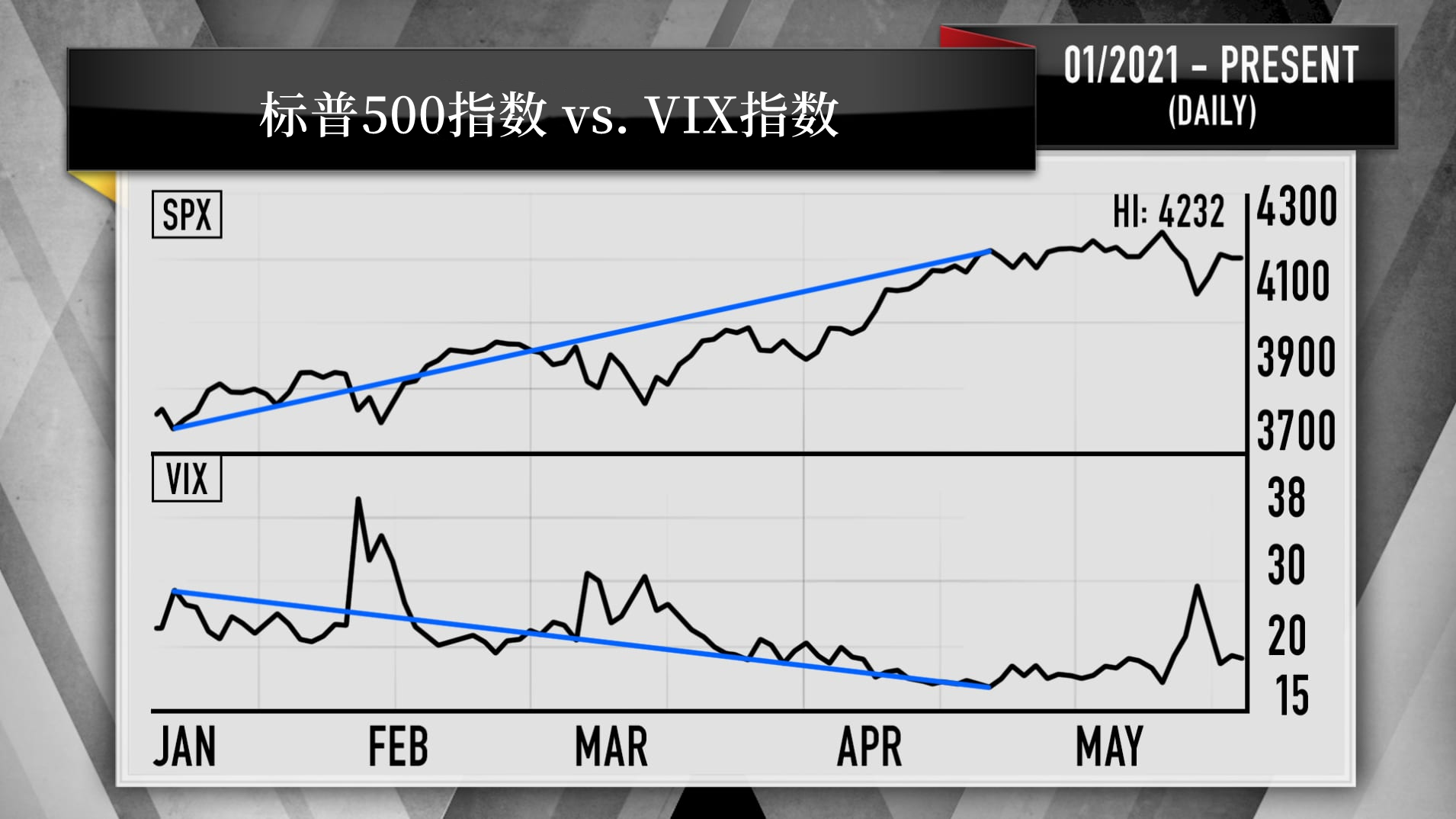 作為股市波動性的一個重要衡量指標,VIX指數越高,意味著股市波動越大。今年以來,VIX指數整體呈現下跌趨勢。然而,自4月中旬以來,該指數已經從接近最低位攀升了近30%,同期標普500指數跌了今年0.5%。