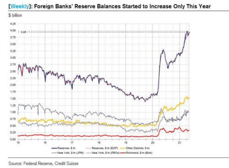 但與2015年至2016年期間有所不同的是,外國銀行吸收準備金的能力也是有限的。越來越多的外國銀行的資產負債表顯示,它們吸收準備金的能力已經不足。上週,Zoltan也重申了他的觀點: