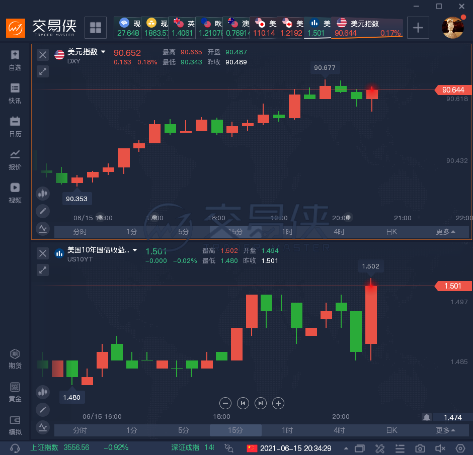 數據公佈後,現貨金銀、美元指數暫時波動不大,美國10年期國債收益率從1.487%升至1.501%。