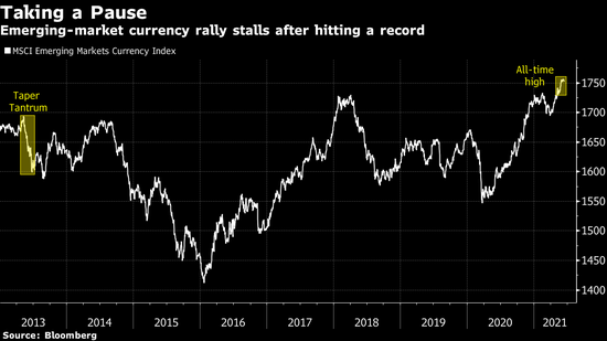 新興市場貨幣從疫情大流行後的低點上漲13%並創紀錄高點,但這波漲勢現在似乎正要消退。