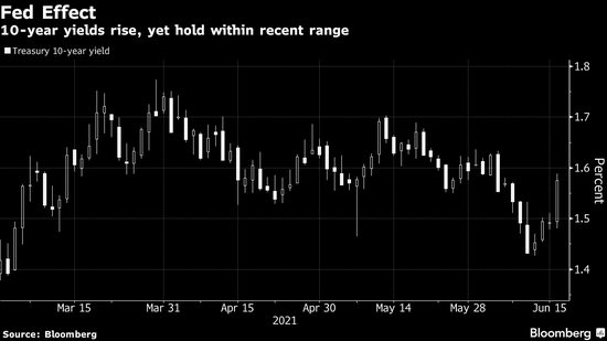 10年期美債收益率週三上漲多達10個基點至1.59%,從上週的三個月低點1.427%持續反彈。當天高點仍遠低於3月份達到的2021年峰值1.77%。
