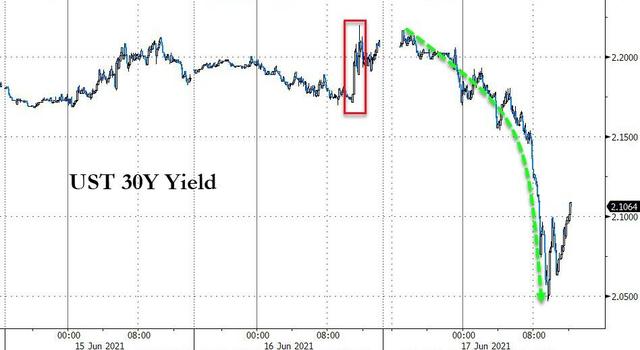 30年期美債收益率在美股午盤一度降至2.05%下方,創2月中旬以來新低,日內最大降幅達16個基點,創2月以來最大盤中降幅,美股收盤時約為2.1%。