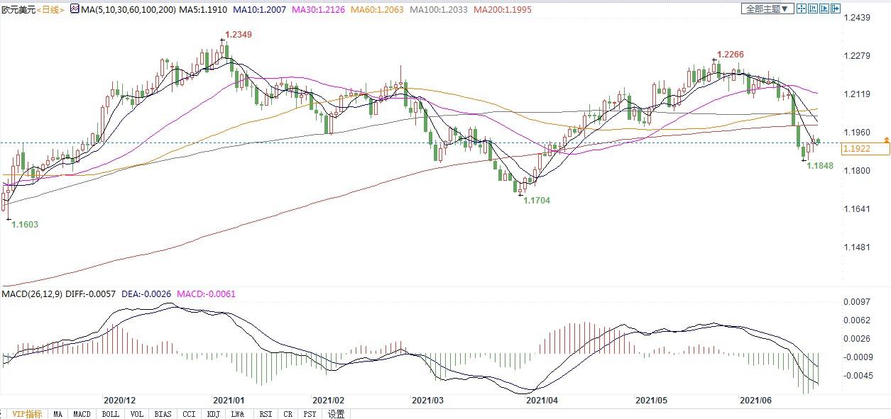 6月22日,法國巴黎銀行(BNP Paribas)外匯策略師預計,預計歐洲央行只會在2024年加息,今年下半年歐元兌美元將進入熊市,到2021年底跌至1.17,到2022年底跌至1.14。
