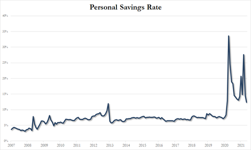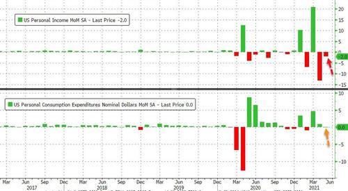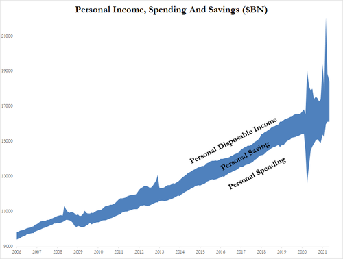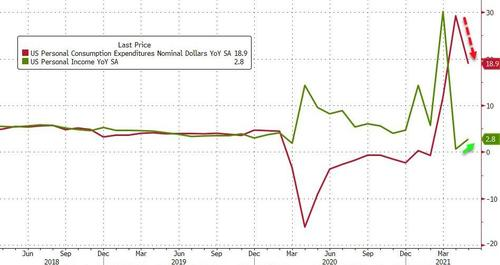 當然,由於低基數效應,美國居民收入同比增長溫和加速,而支出增長顯著放緩(但數值較高)。