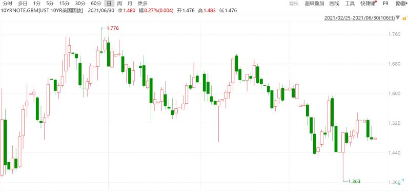 然而三個月後的今天,10年期美債收益率已跌至1.479%,6月份迄今已下跌11.3個基點,也開始考驗許多策略師對年底向2%攀升的預期。