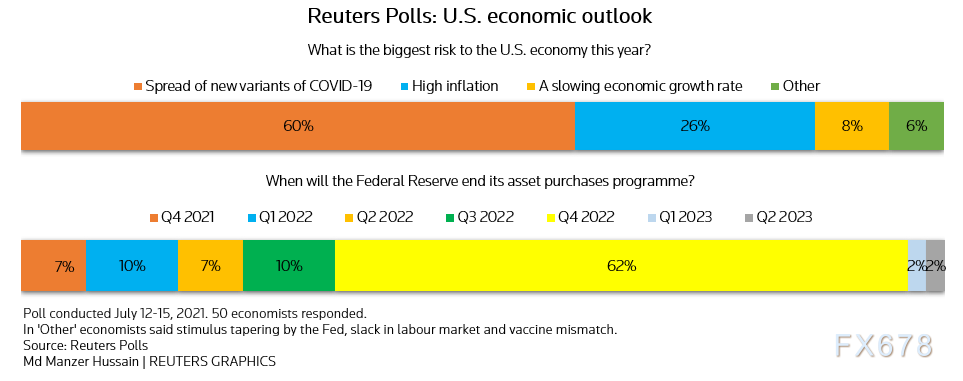 在2022年底前將結束資產購買計劃,更多一些分析師目前預計最早明年加息,但他們認為新冠新變種毒株是經濟面臨的最大風險。