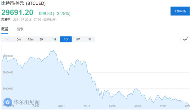 今日,比特幣自6月22日以來首次跌破30000美元,並拖累其他數字貨幣走低。