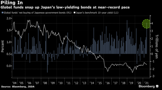 隨著新冠病毒delta變種的傳播刺激了對避險資產的需求,海外資金6月份的日本政府債券購買規模創出歷史第二高水平。