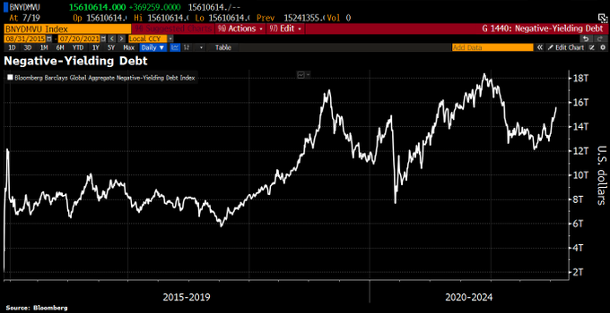 全球負利率債券規模突破15萬億美元大關