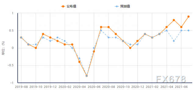 顯示,市場預計通膨大幅的上行只會再持續一兩個月,非季節性因素調整後的7月份CPI指數預計將上漲0.6%,而在2010-2019年期間,7月份CPI完全沒有上漲。8月之後,月度通膨率預計僅略高於平均水平,但與去年同期相比仍可能超過5%,到了明年,市場預計通膨水平將大幅下降。