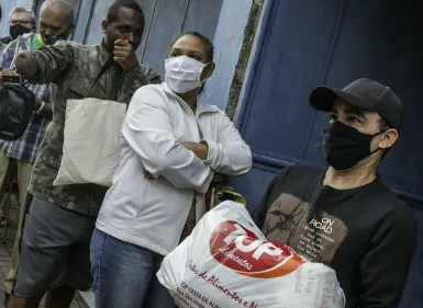 志願者向里約熱內盧貧民窟的居民分發食物(圖源:Financial Times)