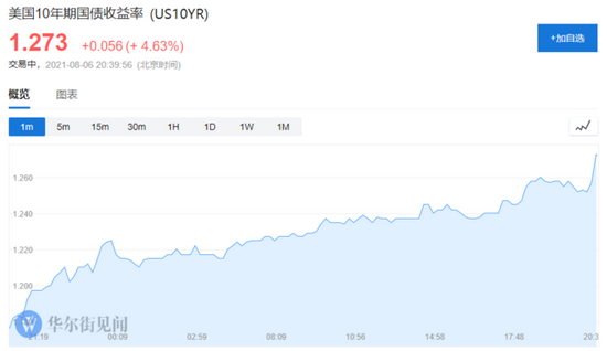 消息公佈後,美元指數短線拉升超15點至92.58;美國10年期國債收益率拉漲至日高,報1.278%;納指期貨小幅下挫。