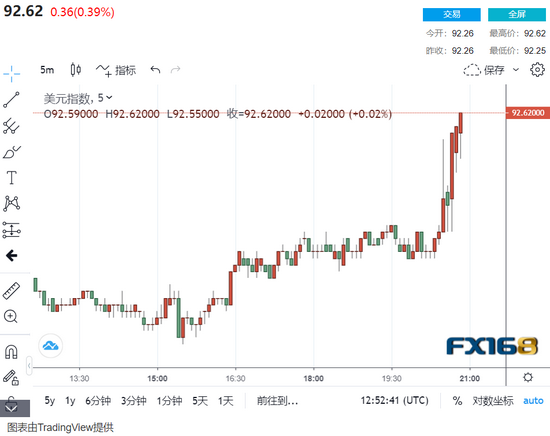 匯市方面,美元指數持續拉升至92.60;歐元/美元跌破1.18,最低1.1777;英鎊/美元最低跌至1.3892……美債方面,美國10年期國債收益率拉漲至日高,現報1.278%。