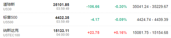 截至周一收盘,标普500指数、道琼斯(35264.6719, 162.82, 0.46%)指数和纳斯达克(14788.0868, -72.09, -0.49%)指数都比历史高点低了1%。