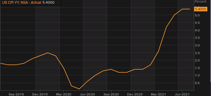 北京時間週三20:30公佈美國7月未季調CPI年率,錄得5.4%,與預期的5.3%相差不大,已三個月維持在5%以上;7月季調後CPI月率錄得0.5%,符合預期,同時較前值的0.9%有所回落。