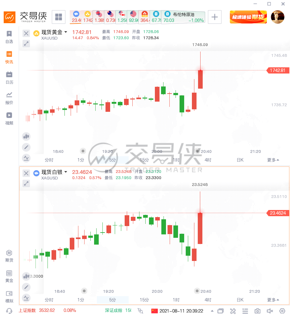資料公佈後,COMEX最活躍黃金期貨合約20:30一分鐘內買賣盤面瞬間成交2979手,交易合約總價值5.18億美元,現貨黃金累計漲超10美元。