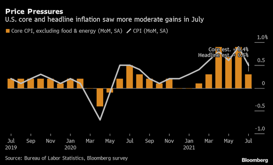 勞工部週三公佈的資料顯示,美國7月消費者價格指數(CPI)環比上漲0.5%,同比上漲5.4%。扣除食品和能源成本的核心CPI環比上漲0.3%,同比上漲4.3%。