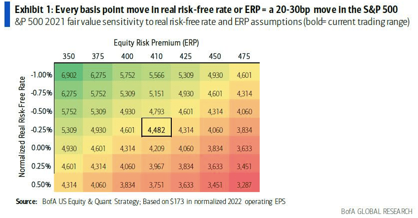 因此,與其他銀行在市場走高時匆忙上調標普預期不同,美國銀行仍然是唯一的看跌者,它對10年期收益率的預測是年底前達到1.9%,較目前上漲約55個基點,這將導致標普500指數下跌約15%。