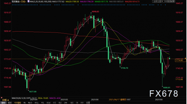 北京時間8月16日19:08,現貨黃金報1774.8美元/盎司。