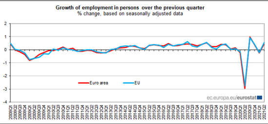 同時,歐盟的GDP在第二季度環比增長了1.9%,就業率增長0.6%