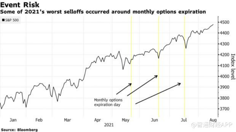 一種可能性是,這與每月中旬發生的不穩定的市場事件,即期權到期有關。8月份的期權到期將於本週五到來。