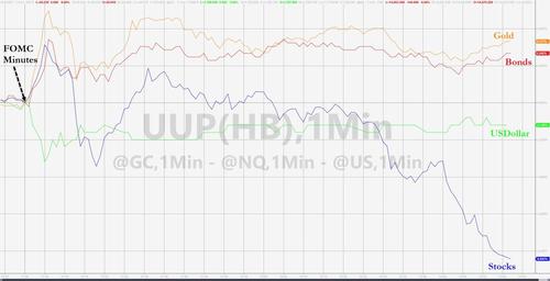 如果你詢問美股投資者對隔夜美聯儲紀要的解讀,那麼他們可能會很肯定地告訴你,這份顯示多數美聯儲官員認為今年可以開始放慢債券購買速度的紀要,自然而然是一份鷹派的紀要,因為這直接導致了美股在尾盤加速下跌。