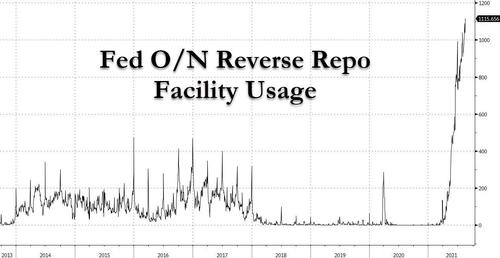 就在美聯儲紀要發佈的同一天,美聯儲隔夜逆回購操作規模在週三已進一步攀升至了創紀錄的1.116萬億美元,參與機構多達82家。通過隔夜逆回購,貨幣市場基金等對手方可以將其現金存放在美聯儲。美聯儲資料顯示,上述規模超過了8月12日創下的1.087萬億美元的歷史最高水準。