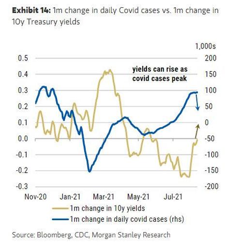 一時間,認為美債收益率下跌是德爾塔變種廣泛傳播引發的經濟放緩擔憂的直接結果,幾乎已經成為了近期市場的共識。 對此大摩也部分認同:「過去兩個月美國國債收益率的下降,與全球範圍內德爾塔病例數的上升同時發生,已經在相當大程度上反映了這種下行風險。 ”