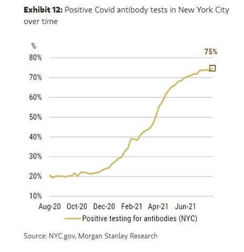 值得注意的是,紐約市最新的血清檢測顯示,75%的當地人口已具有某種形式的抗體免疫——無論是由於接種疫苗還是實際上感染治癒后形成了抗體。 因此,美國正越來越接近「群體免疫」。