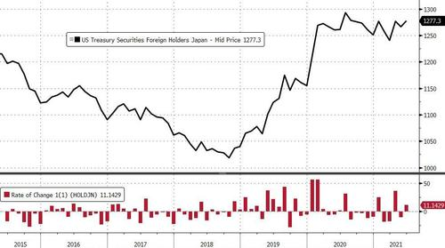 從美國財政部披露的國際資本流動報告(TIC),日本在今年4月和6月均大舉增持了美債。 日本6月繼續位居美國國債的最大海外持有國,增持111億美元至1.277萬億美元,是11個月里的第三次增持。