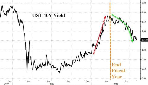 這一"真相"如今看來顯然頗為令人感到"啼笑皆非"。 要知道在3月時,多數投資者曾一度「天真地」認為,美債收益率的上升是由美國強勁經濟復甦推動的再通脹交易引發的,市場甚至一度普遍認為該收益率將很快升破2%。