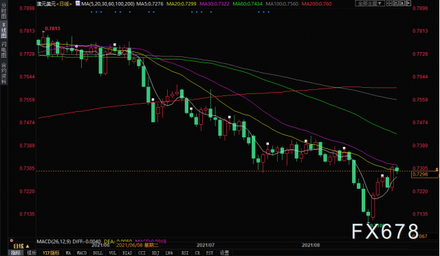 北京時間8月30日20:22,澳元兌美元報0.7298/300