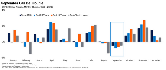 週二,LPL Financial首席市場策略師Ryan Detrick按照慣例,在研究報告中強調了9月風險預警。