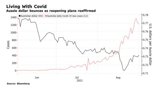 在這一決定出臺之際,新冠病毒delta變種被證明比預期更難控制,迫使悉尼和墨爾本延長了封鎖期。市場預計,澳大利亞的經濟在本季度將大幅收縮,經濟學家也相應地下調了第四季度的增長預期。