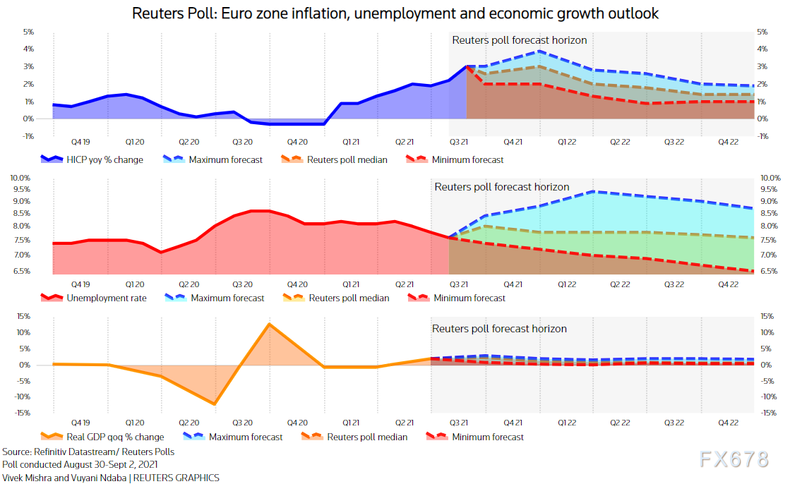 隨著歐元區經濟復蘇在疫苗接種活動擴大的背景下廣泛改善,以及通脹率處於10年高位,預計歐洲央行將在9月9日宣佈縮減其1.85萬億歐元大流行病緊急資產收購計畫(PEPP)的每月購買規模,縮減購債時間早于美聯儲。
