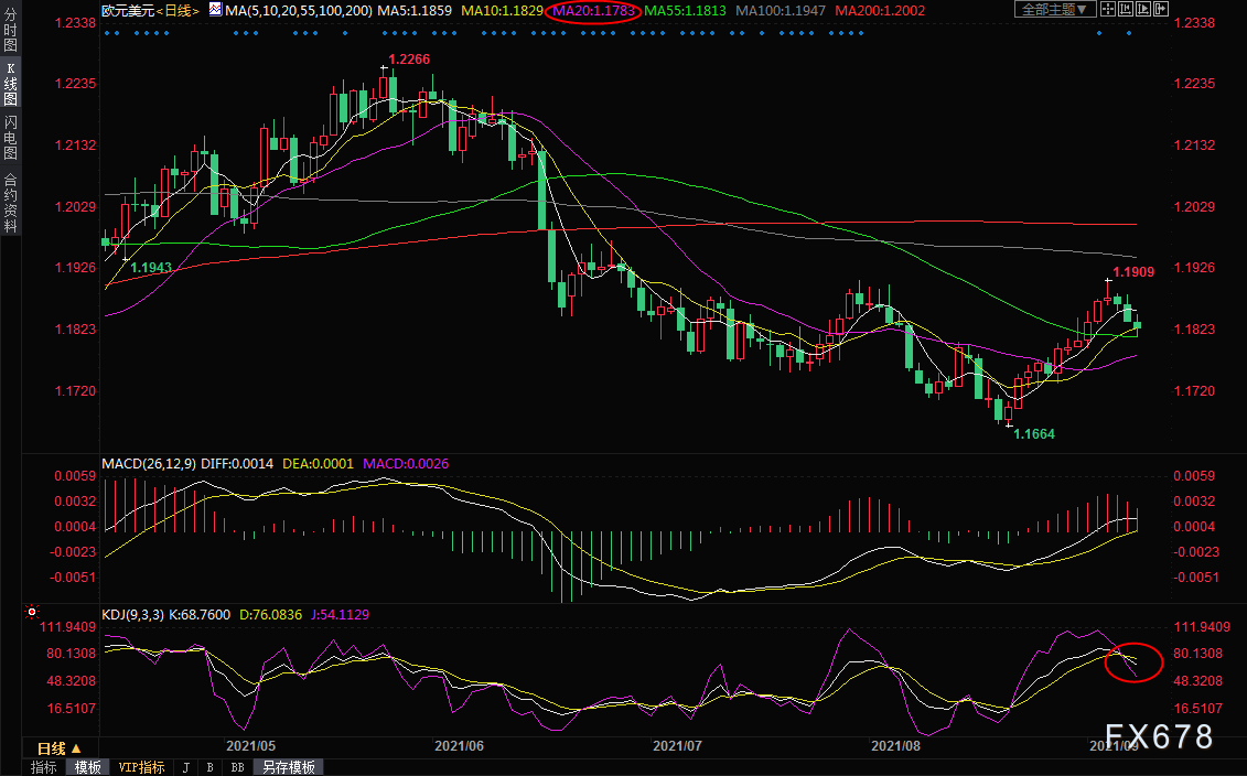 相對而言,鑒於本周歐洲央行大概率偏向鷹派,儘管歐元兌美元近幾個交易日走弱,但如果本周能夠守住21日均線1.1783附近支撐,則短線後市仍有震盪走高的機會。