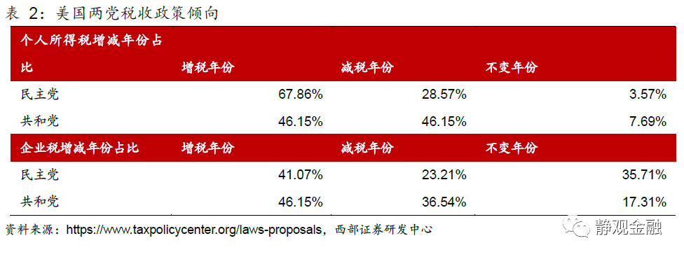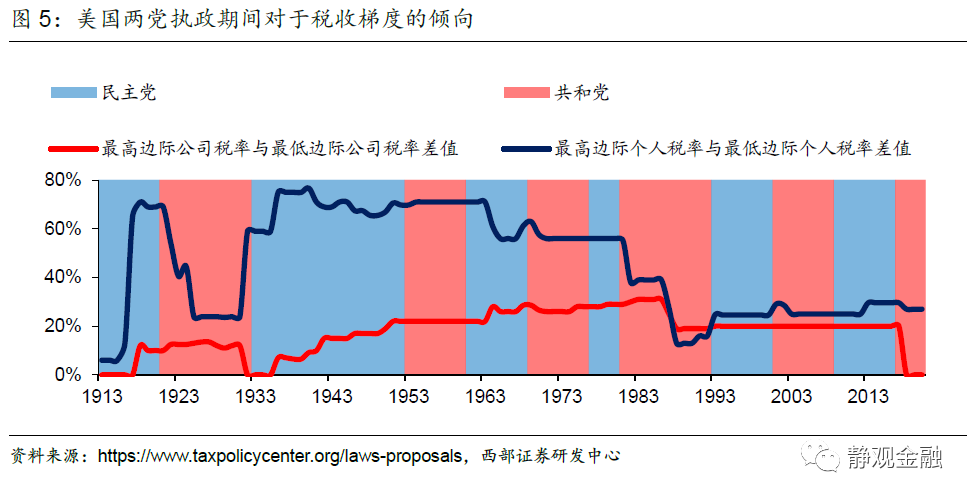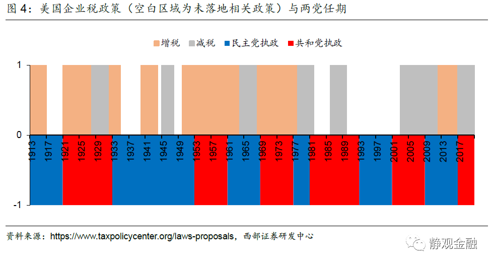 結合前文可知,美國反壟斷政策執行力度、稅收政策與貨幣政策在長週期上會形成共振:加稅、無風險利率上移以及強化反壟斷都是美國民主黨縮小貧富分化的重要手段;減稅、無風險利率下移以及淡化反壟斷會一併出現在共和黨執政影響力較強的時期。