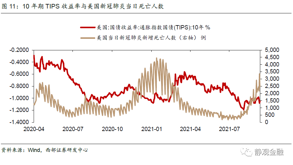 由於美聯準會需要“左側預判;右側行動”,因此需待美國中低收入群體大規模回歸就業市場後方能給出Taper時間表,預計時間為今年Q4。我們在前期報告中多次提到基於美聯準會反覆溝通,本輪Taper已經不再是黑天鵝,但市場並不會因此而如釋重負。首先,疫後美債殖利率特別是10年期TIPS殖利率走勢受疫情影響極大,每次美國疫情反彈實際利率就會回落、疫情降溫實際利率又再度反彈。在Delta毒株引發的疫情反彈後10年期美債殖利率及TIPS殖利率下行明顯,因此一旦疫情降溫美債殖利率仍將反彈。其次,美國聯準會需要為明年中期選舉前預留政策空間。當前10年期美債殖利率與10年期TIPS殖利率都處於極低水平,除非未來數月無風險利率走高否則明年亦沒有下行空間。當然,由於Taper已經是白天鵝且美國進入被動補庫存階段,因此除非通膨預期再次升溫,否則年內10年期美債殖利率仍然大幅走高,1.7-1.8%區間或有較大阻力。