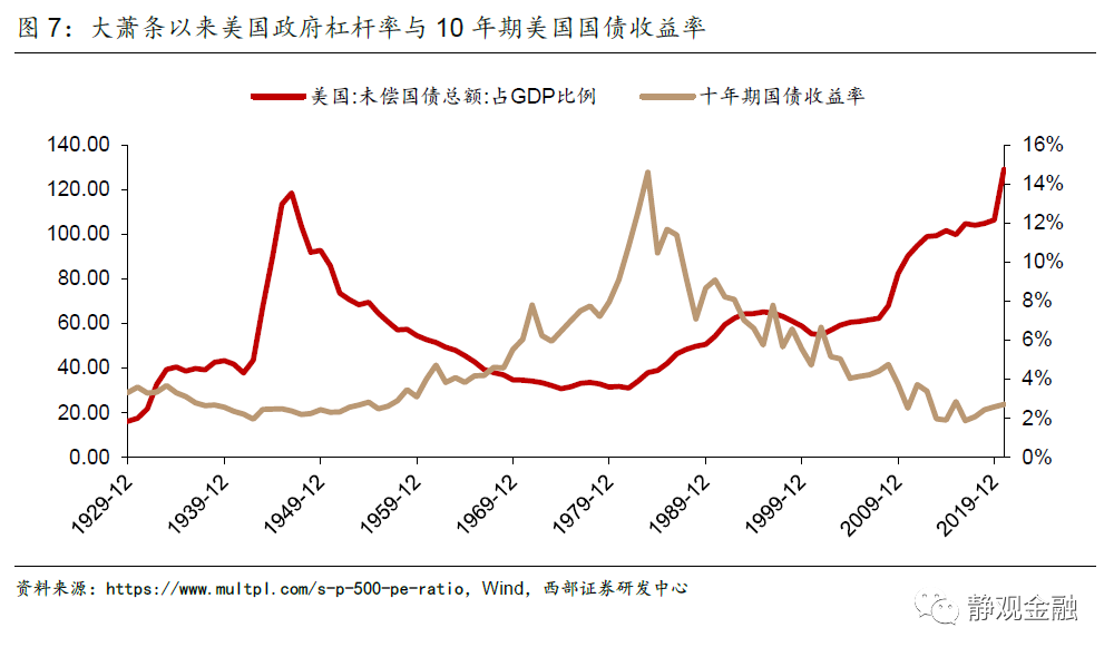 由此可見,美國政府對於反壟斷的態度跟美國社會結構以及政治週期一致。當貧富分化加劇、中產佔比偏低階段,美國政治光譜就會左傾、民主黨影響力上升,隨後美國進入加稅週期、反壟斷政策執行力度加強;當中產佔比較高、消費力過強並引發高通膨(如70年代),美國政治光譜就會右傾、共和黨影響力上升,隨後美國進入減稅週期、反壟斷力度減弱。此外,正如我們在9月7日報告《美債走勢的長期邏輯與短期矛盾》中指出的,美國民主黨執政影響力增強、試圖優化社會結構的階段,也將提高機會成本遏制投機進而10年期美債殖利率處於上升期;共和黨執政影響力增強、減稅週期下,政府槓桿率上升財政赤字貨幣化訴求下10年期美債殖利率處於下降期。