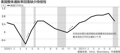 鮑威爾認為,當前的高通膨項目主要集中在受疫情影響嚴重的商品和服務上。這些高通膨項目包括食品、能源、新車和二手車、汽車租賃、旅遊以及交通等類別。一些研究機構通過基於核心通膨率進一步剔除了這些高通膨項目,發現當前受疫情影響較小的商品和服務價格水平並未受到廣泛的傳導影響。比如,美國6~7月整體通膨率(CPI)環比季調分別為0.9%和0.5%,剔除與疫情高度相關的項目後,通膨率環比為0.25%和0.05%。