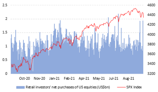 散戶投資者大舉買入延續了近期的一種趨勢,即在市場大跌期間買盤明顯增加,而在市場盤整的日子裡他們則更傾向於在場外觀望。這表明散戶“對股票現在並不特別興奮,只有在很高幅度折價的時候才會傾向於逢低買入,” Vanda Securities分析師Ben Onatibia和Giacomo Pierantoni寫道。