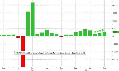 ADP首席分析師Nela Richardson表示,“儘管就業市場復蘇步伐較第二季的74.8萬人明顯放緩,但仍在繼續取得進展。”