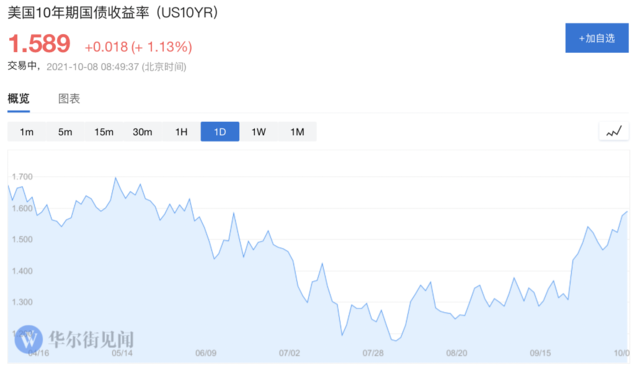 目前,美國10年期國債殖利率上漲了5.1個基點至1.571%。自9月22日美國聯準會FOMC會議宣佈Taper最快將於11月到來,美債殖利率已攀升27個基點。