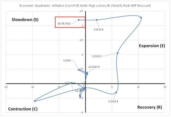 截至上週末,經濟自2018年6月以來首次進入“放緩”象限,並走出傳統的“擴張”階段。