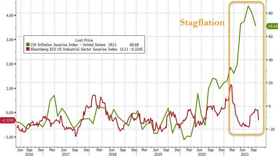 上述情況疊加飆升的“非暫時性”價格變化,一切似乎都在指向“滯脹”......